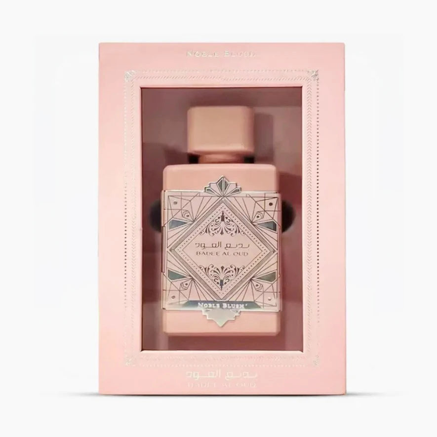 Noble Blush by Lattafa Perfumes is a Floral Fruity Gourmand fragrance for women. This is a new fragrance. Noble Blush was launched in 2024. Top note is Rose Milk; middle notes are Meringue and Almond; base notes are Vanilla, Musk and Sandalwood.